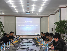 【本報訊】2012年4月16日,溫州青年創業聯誼會葉毅副會長一行到我司參觀交流。股份公司張田副總裁、總裁辦李亞輝主任在總部熱情迎接葉毅副會長一行,并陪同參觀新工業園和樣品室。隨后,雙方以青年創業及企業發展為主題進行了深入地交流。